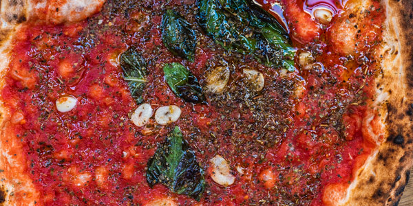 - Tangy tomato sauce, aromatic oregano, and pungent garlic