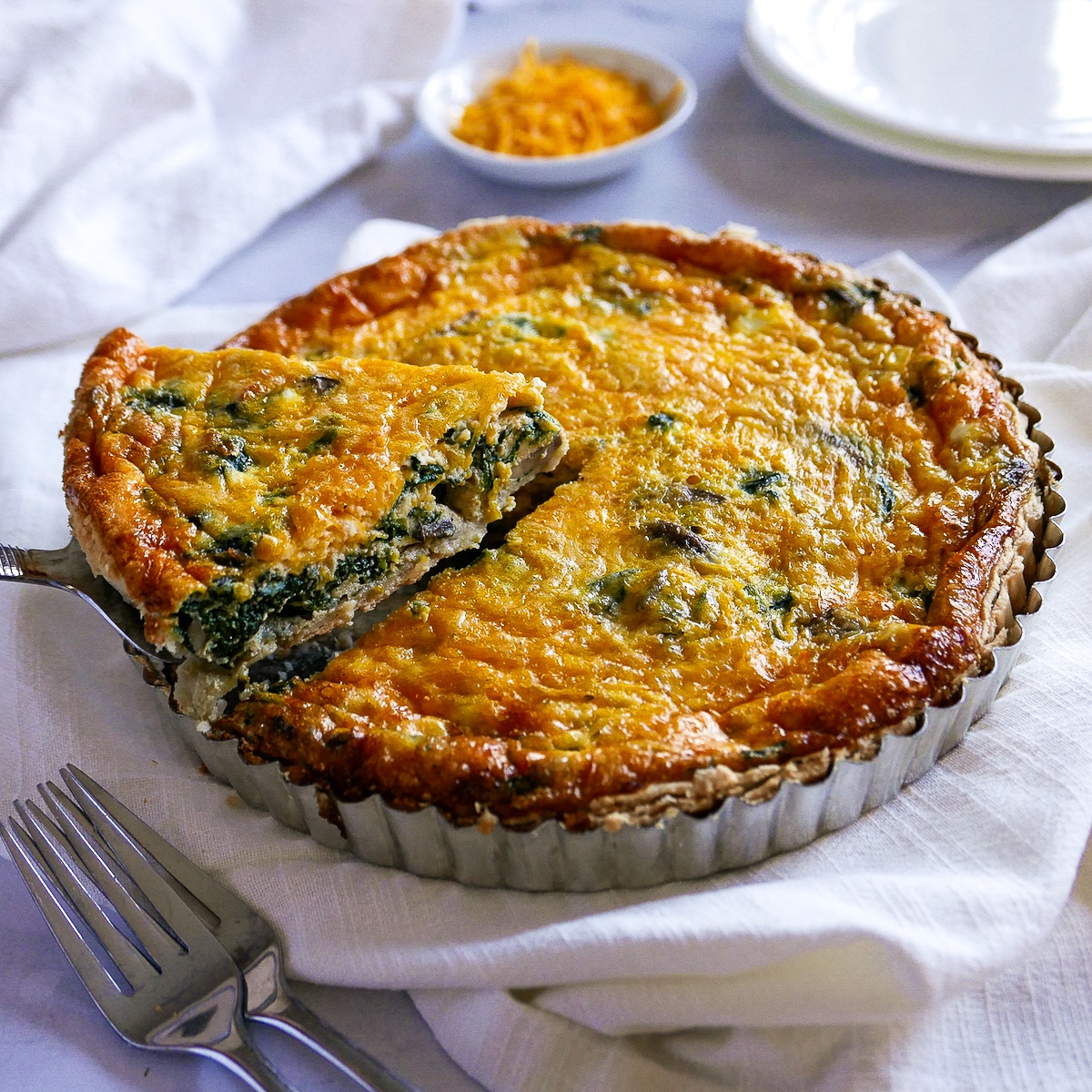 Remember to let the quiche rest for a minute or two before serving.